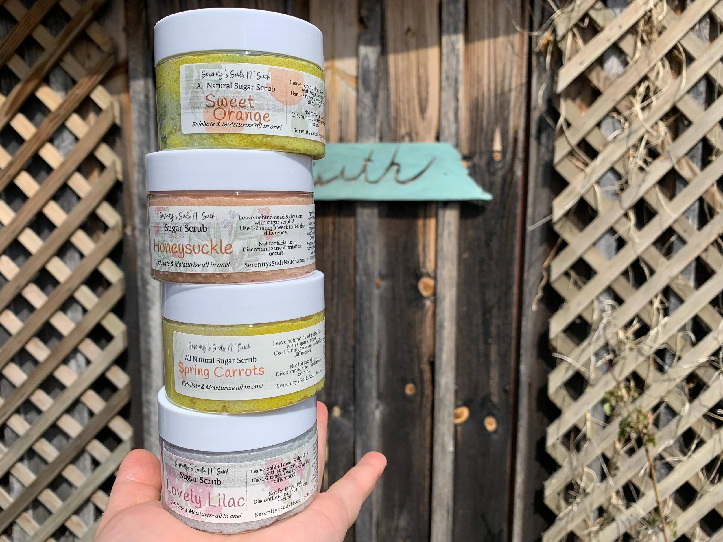 Sugar Scrubs are a mild exfoliate, that moisturizes & rejuvenates the skin. Sugar also has a natural anti-aging effect on the skin!!